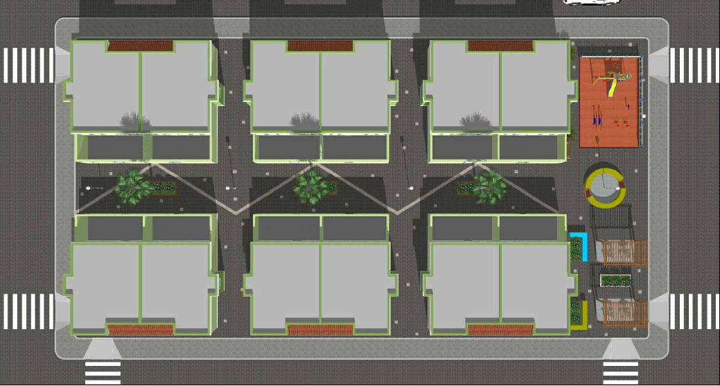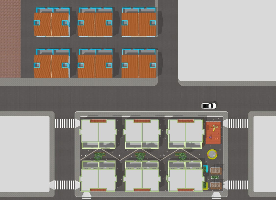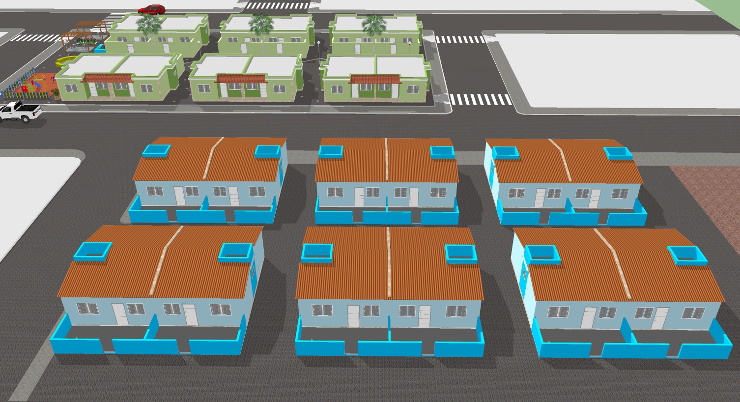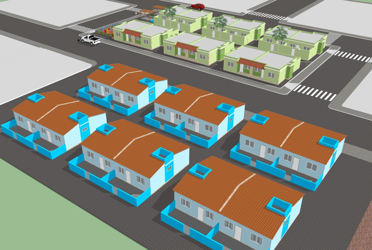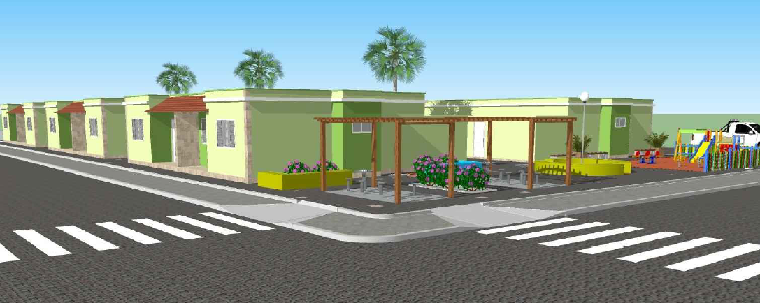 O projeto está sendo implantado numa área total de 1727,60 m², abrigando o total de 24 habitações geminadas de tipologia T2, todas com varanda e quintal.