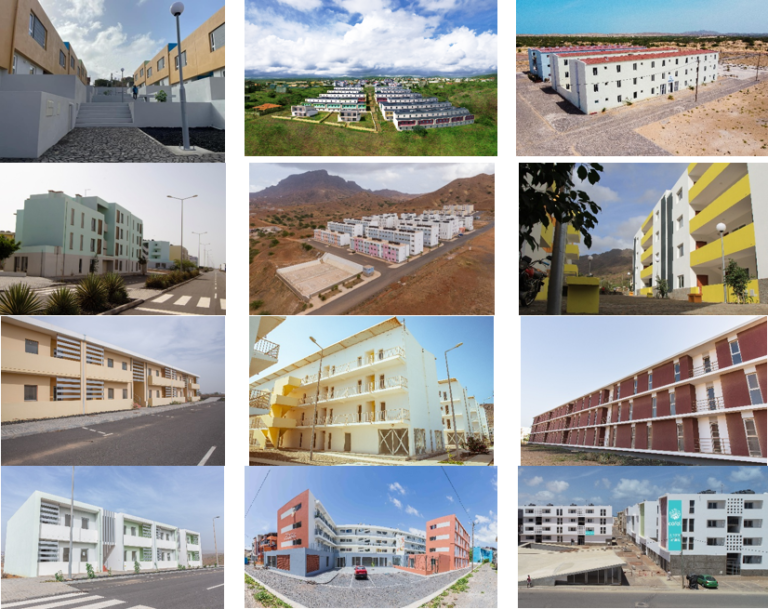 - Obras em curso: 236 na Vila Clarinete, Ribeira de Julião, Mindelo, São Vicente; 12 no Aldeamento Blue Marlin, Cacimba, Tarrafal, São Nicolau; 100 em Chã de Matias, Espargos, Sal; 50 em Rabil, Boavista; 236 na zona K – Lote 1 e Lote 2, Praia, Santiago; 83 no Condomínio Tabanka, na zona K1, Praia, Santiago; 83 no Condomínio Batuque, na zona K2, Praia, Santiago; 20 no Edifício Garça Vermelha, em Rincão, Santa Catarina, Santiago; 12 em João Teves, São Lourenço dos Órgãos, Santiago; 12 Aldeamento Funaná, em Achada Fazenda, Santa Cruz, Santiago; 18 em Ribeira da Barca, Santa Catarina, Santiago; 12 em Porto Novo, Santo Antão; 11 no Edifício União Vitória, em Achada Limpo, Praia, Santiago; 16 no Edifício Aliança Vitória, em Achada Limpo, Praia, Santiago; 18 no Edifício Amizade Vitória, em Achada Limpo, Praia, Santiago; 36 em Bangaeira, Chã das Caldeiras, Fogo; 12 em Paul, Santo Antão; 73 em Vila Jardins de Hortelã, em Hortelã de Cima, Espargos, Sal; 22 no Aldeamento Rozar, na zona de Iraque, Mindelo, São Vicente.